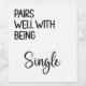 Dieses Weinetikett sagt "Pairs Well With Being Single" ist das ideale Geschenk für jemanden, der sich scheiden oder aufbrechen lässt. Es fügt jeder Weinflasche eine Touch Spaß und Launen hinzu, was es zu einem Statement an jeder Ansammlung oder einem nachdenklichen Token für einen Freund in der Not macht. Mit diesem Label können Sie Ihre Wunschflasche individuell gestalten und Ihrem Geschenkerlebnis eine persönliche Touch hinzufügen. Fröhlich, neue Anfänge und die Freuden des Single anzunehmen!