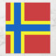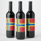 Weinetikett mit der Flagge des historischen Landkreises von Orkney in Schottland, Großbritannien; rote Flagge mit blauem und gelbem nordischem Kreuz