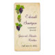 Eine Weinrebe mit vier Weintraubenhaufen, die entlang der links Seite dieses Etiketts angeordnet sind. Die Traube schlängelt sich hinter den Trauben vor einem Pergament-Hintergrund. Ein hervorragendes Label, um auf einem besonderen Geschenk Wein oder bei einer Hochzeit zu verwenden. Erhältlich mit passenden Produkten sowie einer horizontalen Ausrichtung.