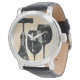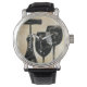 Uhr, Vintage Männeruhr mit schwarzem Lederarmband