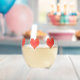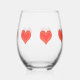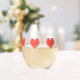 Sieben dreidimensionale rote Herzen sind in einer Reihe um das Glas angeordnet.