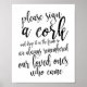 Ein elegantes Hochzeitszeichen, das den Text "Bitte unterschreiben Sie einen Kork und lassen Sie ihn in den Rahmen, sodass wir immer erinnerten unsere Lieben, die kamen" in einem extrovertierten Skript-Schriftart, die Bürste Textur fügt ein spontanes und spielerisches Gefühl. Die Hintergrundfarbe kann nach Ihren Wünschen und Vorlieben personalisiert werden, bitte kontaktieren Sie mich, wenn Sie eine spezielle Anfrage haben.