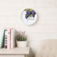 Diese Wanduhr wird in einem stilvollen Weintraubendruck auf dem Land gezeigt. Passen Sie dieses Objekt an oder kaufen Sie es wie gezeigt. Lizenziertes Bild