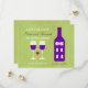 Diese moderne Karte ist ideal, um eine Hochzeit zu verkünden, um sie in einem Weingarten zu feiern, oder eine Hochzeit mit einem Weinthema. Es ist auch für Weinliebhaber geeignet. Eine Weinflasche und zwei Weingläser auf einem strukturierten Hintergrund und einem roten Herz. Das Datum ist auf der Flasche geschrieben. Fügen Sie Ihre eigene Formulierung hinzu.