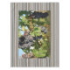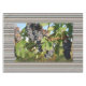Weintrauben auf Rebe-Tischdecke. Teil der Wein-Geschenk-Sammlung. Entworfen für Weinkenner und Weinliebhaber. Dieser Entwurf umfaßt einen Vintagen Streifenhintergrund, um die Farben der Trauben und der Reben zu erhöhen.