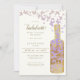 Ein schlichtes, modernes, elegantes und schicke Junggeselinnen-Abschied-Wochenende-Einladungs-Template mit einem Schmetterlingstil, mit einer Weinflasche mit Goldfolie (das ist ein digitaler Effekt, nicht echte Folie) und lila Schmetterlingen. Eine schöne Wahl für ein Bachelorette Wochenende der Weinprobe im Napa Tal oder in jedem anderen Weingut.