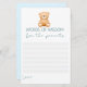 Dies ist eine bezaubernde "Words of Wisdom for the Parents" Ratkarte, die perfekt für Babyduschen geeignet ist. Oben verleiht ein süßer, teddyscher Bärensymbol ein Gefühl sanfter Wärme. Unter dem Bären steht der Titel in einem sanften, einladenden Schriftart, der die Gäste einlädt, ihr Erziehungswissen zu vermitteln. Der weitläufige Raum ist so gestaltet, dass die Gäste ihre Botschaften schreiben können, was sie zu einem personalisierten Zuhause für werdende Eltern macht. Das Wort "Liebe" ist unten im Text vorgeschrieben, was darauf hindeutet, dass jeder Ratschlag von einem Ort der Zuneigung und Fürsorge kommt. Mit dieser Karte können Freunde und Familie ihre Erfahrungen und Wünsche mit den neuen Eltern teilen.
