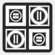 Das fett geometrische Muster besteht aus vier weißen Quadraten mit Platz zwischen ihnen auf einem schwarzen Hintergrund. Die diagonal gegenübergestellten dicken Quadrate enthalten jeweils einen dünnen weißen Kreis mit einem dicken gleichmäßigen Zeichen im Inneren. Im Gegensatz dazu enthalten die dünnen Quadrate jeweils einen dicken weißen Kreis, der die Kanten des Quadrats mit einem dünnen vertikalen Gleichzeichen im Inneren Touch. Digitales Bild. Copyright © 2015 Claire E. Skinner. Alle Rechte vorbehalten.