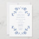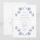 Chic mit jugendlicher Eleganz. Diese blau-weiße Hochzeitseinladungskarte strahlt einen frischen, modernen und jugendlichen Ton aus. Auf der Vorderseite der Karte befindet sich ein zeitgenössisches Set von Schriftart in staubblauer und hübscher blumengeschmückter Monografie. Auf der Rückseite sind UAWG Prompt und QR-Code für Ihre Hochzeitswebsite enthalten.
