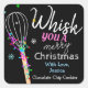 Ein farbenfroher Weihnachtsaufkleber mit einem "Whisk you a Merry Christmas" bunten Weihnachtsleuchten und Schneeflocken-Design. Dieser Ferienaufkleber ist verfügbar, um auf dem unteren Bereich mit Namen und gebackenen guten Informationen personalisiert zu werden.