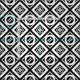 Stilvolles geometrisches Gewebe kennzeichnet ein mutiges Muster der wechselnden starken und dünnen weißen Diamanten mit Raum zwischen ihnen auf einem schwarzen Hintergrund. Die starken Diamanten jeder enthalten einen dünnen weißen Kreis mit einem starken weißen Gleichheitszeichen schräg nach innen. Demgegenüber enthalten die dünnen Diamanten jeder einen starken weißen diesen Kreis Touchs seine Ränder mit einem dünnen gekippten Gleichheitszeichen des Weiß nach innen.
