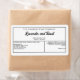 Ein Etikett für Seife oder Kosmetikprodukte mit weißem Hintergrund und schwarzem Text. Hier finden Sie Platz für Ihren Firmennamen, Zutaten, Geschäftsinformationen und vieles mehr.
