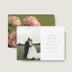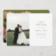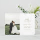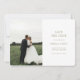 Modern und elegant. Diese schöne Hochzeit bewahrt die Dattelkarte mit einem wunderschönen Strauß von üppigen Rose vor einem schicken olivgrünen Hintergrund auf der Rückseite, während die Vorderseite mit einem Set von zeitgenössischen Schriftart und Paar Foto links ist.