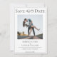 Dieses moderne Foto Ankündigung Datum freihalten mit einem einfachen Textdesign, einem eleganten Banner in einem modernen, umrissenen Kasten, der für Ihr Foto und Ihre Hochzeitsdetails gewartet ist, um Ihre Wünsche zu erfüllen. Zusätzliche Farben sind mit diesem Design verfügbar.