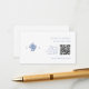 Chic mit jugendlicher Eleganz. Diese staubige, blau-weiße Hochzeitskarte des RSVP-Gehäuses strahlt einen frischen, modernen und jugendlichen Ton aus. Auf der Vorderseite der Karte befindet sich ein zeitgenössisches Set von Schriftart in staubblauer und eleganter blumengeschmückter Monografie, mit einem knusprigen weißen Hintergrund und QR-Code für eine Hochzeitswebsite auf der Rückseite.