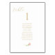 Elegant, frisch und modern. Diese schlichte und elegante Tischnummer mit der Gästeliste besticht durch eine skurrile Linie, gezeichnet Rosa Rose und ein zeitgenössisches Set von Schriftart in einem Imitat Gold, vor einem knusprigen weißen Hintergrund. Die Vorderseite wird auf der Rückseite wiederholt, um die Sichtbarkeit der Tabelle zu verbessern. Alternativ können Sie das Set der Karten auf einem Display zusammenlegen. Dieses Design enthält 10 Namen, aber 12 Namen (max) passen noch.