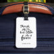Reisen Sie stilvoll mit diesem literarischen Gepäckanhänger mit Ihrem Namen und einem schwarzen Pinselskript des Zitats "obwohl sie nur wenig sie ist fierce" aus A Midsommer Night's Dream von William Shakespeare vor einer weißen Hintergrundfarbe. Personalisieren Sie es, indem Sie den Platzhalter-Text ersetzen. Für weitere Optionen, wie zum Beispiel den Schriftart zu ändern und ihn zu vergrößern oder zu verändern, klicken Sie auf den Button "Anpassen". *Bitte beachten Sie, dass das Zazzle-Wasserzeichen, das in der Zoomvorschau angezeigt wird, nicht auf dem gedruckten Endprodukt angezeigt wird. ©Rosewood und Citrus