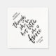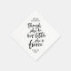 Stilvolle Abschluss Serviette mit schwarzem Pinselskript des Zitats "obwohl sie nur klein ist, ist sie heftig" von A Midsommer Night's Dream von William Shakespeare vor einem weißen Hintergrund. Personalisieren Sie es, indem Sie den Platzhalter-Text ersetzen. Für weitere Optionen, wie zum Beispiel den Schriftart, die Textgröße/Schriftfarbe oder den Abstand zwischen den Buchstaben zu ändern, klicken Sie auf die Schaltfläche "Anpassen". *Bitte beachten Sie, dass das Zazzle-Wasserzeichen, das in der Zoomvorschau angezeigt wird, NICHT auf dem gedruckten Endprodukt erscheint. © Rosewood and Citrus