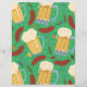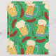 Weiße Tasse von Bier und geschliffene Bratwürste auf grünem Hintergrund. Ideal für Themen der Oktoberfest- und Hinterhoftheorie-GRILLEN