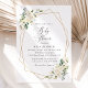 Mit dieser charmanten Babydusche laden Sie Freunde und Familie in Stil und Set zu einem erlebnisreichen Tag ein. Das Design zeichnet sich durch weiße Aquarellfarben-Blume, Grünpflanzen und goldene Rahmen auf weißem Hintergrund aus.
