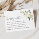 Vervollständigen Sie Ihre Hochzeitssaison mit dieser stilvollen Wunschkarte. Das Design zeichnet sich durch weiße Aquarellfarben und eine grüne Umgebung auf weißem Hintergrund aus.