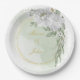 Weiße Blume Grün Blätter Goldkranz Wein Pappteller