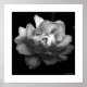 Brillantes nah-up von zarter Blume auf dramatischen schwarzen Hintergrund. Foto von Linda Becker 2011.