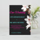 Schöne weiße Blume auf einem schwarzen Hintergrund Hochzeitseinladungen mit Türkis und Rosa Lettering. Diese Einladung sticht wirklich hervor. Es ist modern und blumig, atemberaubend.