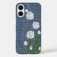 Weiße Puff Blume auf blauem Jean Denim Hintergrund.