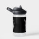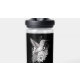 Eine klare Wasserflasche mit einer detaillierten Darstellung von Kolibri, umgeben von Blumendesigns.
