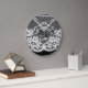 Weiße Blumenspitze: schwarzer Hintergrund. Große Wanduhr