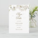 Elegante, hübsche, weiße Blütenkarte Save the Date mit zarten Frühlingsblüten, die Ihre besonderen Datteldetails in eleganter Goldprägung umrahmen. Personalisieren Sie Ihre speziellen Veranstaltungsdetails. Auf der Rückseite sind die weißen Blütenblätter verteilt. Entwickelt von Thisisnotme©