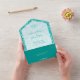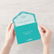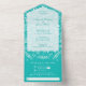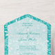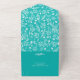 Elegante weiße Botanicals und Punkte auf Türkis (oder irgendeine Farbe), diese dreifach gefliesten Hochzeitseinladungen enthalten Ihre Details in schicken Schriften in Sektionen und eine abnehmbare RSVP-Karte für Gäste zu ergänzen und zurückzukehren. **Vergessen Sie nicht, eine Briefmarke auf der RSVP-Karte und Umschläge auf Ihre Bestellung auf E-Mail lädt!