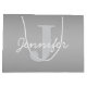 Weiße Cursive und Grau-Monogramm | Editierbare Far Große Geschenktüte