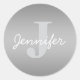 Weiße Cursive und Grau-Monogramm | Editierbare Far Runder Aufkleber