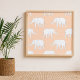 Eine ganze Reihe von weißen Elefanten auf einem farbenfrohen Hintergrund. Dieses Design sieht auf diesem Poster wirklich effektiv aus