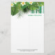 Moderne und niedliche weiße delikate Blume und grüne exotische Blätter. Optionales Monogramm