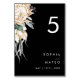 Wir entwarfen diese weiße Blume | Schwarze Tischnummer, um Ihre rustikale dunkle tropische Hochzeit zu vollenden. Die böhmische Aquarellanlage mit ihren modernen böhmischen Blume, wie Protea, Dahlia und getrockneten Lotus, ist ein Set für das modisch-minimalistische Schwarz-Grün. Ändern Sie den Text und fügen Sie ein Foto, um es zu Ihrem eigenen machen. Schauen Sie sich auch die Erholung der Sammlung an, um sich zu koordinieren, die Ihre Hochzeit zusammenbringen wird! https://www.zazzle.com/collections/white_floral_collection-119896729923706651