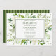 Diese Hochzeitsfeier lädt mit wunderschönen, gepflegten, mehrfarbigen, weißen Hydrangeas und atemberaubendem grünem Blattwerk und einem koordinierenden, grünen Streifen zurück zu jedem Garten, botanisch, floral, romantisch, draußen, rustikal, Vintage Thema. Es ist perfekt für Ihre Hochzeitsfeier nach Ihrer Hochzeit. Machen Sie es einfach zu Ihrem eigenen, indem Sie diese Vorlage personalisieren und Ihre Informationen eingeben. In Sekunden werden Sie Ihre einzigartige und atemberaubende Einladung sehen! Dieses Produkt passt sich perfekt den White Hydrangeas Floral Watercolor RSVP Karten an. Inklusive einer Einladung, damit Sie wissen, wie viele Gäste an Ihrer Hochzeitsfeier teilnehmen werden.