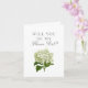 Diese moderne weiße Karte ist eine Visitenkarte für Ihre Blume und bietet eine antike, weiße und grüne Hydrangea-Blume-Stammillustrierung mit klassischen und leicht zu personalisierenden Texten, die Ihnen lasse, wie Sie Ihren Brautparty-Mitgliedern "vorzuschlagen".