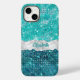 Niedliche hübsche chic türkis aquamarine Imitate Glitzer monogramm I-Phone Gehäuse. Schönes, modernes und cooles Cover für Mädchen, die klassische funkelnd Designs genießen. Zeigen Sie Ihren persönlichen Stil, sehen Sie modern, trendig und fühlen Sie sich stilvoll mit einem einzigartigen Design auf einem mobilen Gerät Zubehör oder passen Sie es über ein anderes Produkt Ihrer Wahl. Fügen Sie Ihren Namen mit einer coolen und modernen kalligraphischen Typografie hinzu. Es ist die perfekte Geschenkidee für einen süßen 16 Geburtstag, Hochzeit, Brautparty, Jubiläen, Babyduschen oder Junggeselinnen-Abschied, Valentinstag oder als Geschenk im Allgemeinen.
