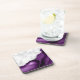 Diese eleganten Untersetzer zeichnen sich durch ein digitales Bild aus weißem Marmor und einen lila, mit Imitaten bestickten Glitzer aus Silber aus.