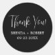 Whimsical minimalistische moderne, anpassbare weiße Skriptkalligraphie auf schwarzem Hintergrund, Hochzeit Umschlag Aufkleber Aufkleber. Der schwarze Hintergrund mit weißer Typografie verleiht dem Ganzen ein klassisches Schwarz-Weiß-Gefühl.