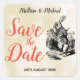 Weiße Kaninchen-Alice im Wunderland Save the Date Quadratischer Aufkleber
