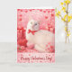 Dies ist ein Foto meiner weißen Katze mit einem blauen und einem grünen Auge. Sein Name ist Snow und er ist eine Schönheit! Dies ist eine süße rosa Valentinstag-Grußkarte mit rosa Herzen, Geschenken und Rosen.