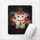 Eine japanische glückliche Katze, illustriert durch Megan Anderson. Das Kanji auf der Münze stellt "Langlebigkeit" dar.