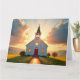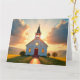 Eine hübsche weiße Kirche in einer lebhaften Landschaft im Sommer. Ideal für Kirchen, Prediger, religiöse Buchläden, Bibelstudium und alle anderen Christlichen Geschäfte, sowie für eine religiöse "Thinking of You"-Karte.