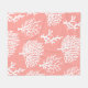 Seekorallenrote Silhouetten im Weiß über einem korallenroten rosa Hintergrund mit weißem Mikropunktmuster. Große Decke für eleganten Küstendekor.