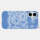 Weiße Lacy-Grenze auf blau iPhone 16 Hülle