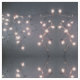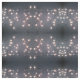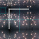 Das Kunstwerk an diesem Stoff entstand aus einem Originalfoto von ZoeSPEAK, das eine Reihe weißer Lichter und eine leere schwarze Saite aufnahm, die in Drehungen aufgehängt und vor eine Stuckmauer gedreht wurde. Die Lichter haben ein rosa Licht, und die Wand ist ein duskisches, bläuliches Grau.
